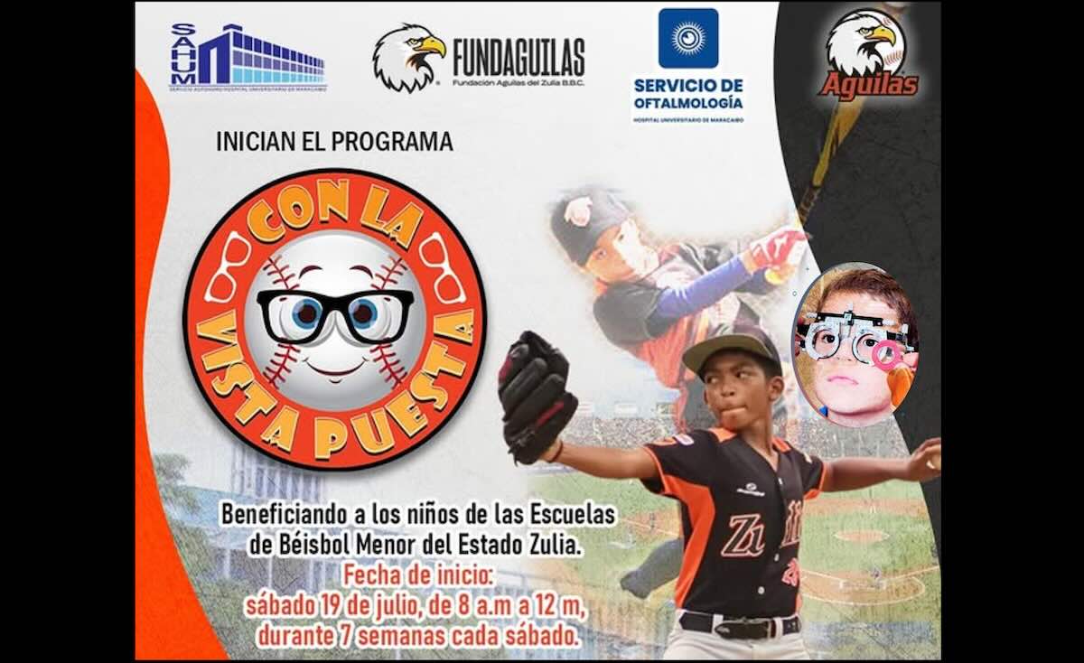 Maracaibo.- La Fundación Águilas del Zulia en alianza con el Servicio de Oftalmología del Hospital Universitario de Maracaibo inician el programa CON LA VISTA PUESTAel cual beneficiará a los niños de las escuelas de béisbol menor del estado Zulia .